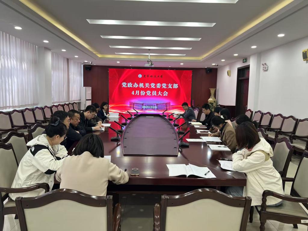 4月23日上午,党政办机关党委党支部在机关楼120(东)会议室召开党员大会,开展集体学习。党支部书记李宁主持会议。