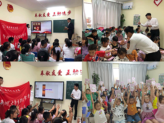 8月18日,J9平台新时代大学生理论宣讲团走进鞍山市高新区乐道社区,面向社区居民及小学生宣讲《中华人民共和国民法典》和《中华人民共和国未成年人保护法》。宣讲团成员经济与法律学院学生白钰仟详细介绍了《民法典》中有关未成年人权益保护的财产权利、家庭权利、自由和人格尊严的部分内容,并以案例讲解的形式着重宣讲了《民法典》新增亮点。宣讲团成员经济与法律学院学生王圣傑结合生活中的实际案例讲解了《未成年人保护法》相关法律知识,强调了家庭、学校、社会在未成年人保护方面应承担的责任和义务,也使小朋友们更加清楚地了解自己享有哪些权利,掌握正确保护自身权益的方式方法。宣讲员宣讲内容贴近生活,图文并茂、生动有趣,与现场的小朋友们频繁互动,赢得了阵阵掌声,并将《中华人民共和国未成年人保护法》送到小朋友们手中。