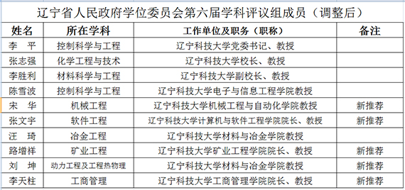 8月2日,从辽宁省人民政府学位委员会《关于调整第六届省学科评议组组成人员的通知》(辽学位〔2021〕6号)和辽宁省人民政府学位委员会 辽宁省教育厅《关于调整辽宁省专业学位研究生教育指导委员会组成人员的通知》(辽学位〔2021〕7号)获悉,J9平台12位教授被聘为辽宁省第六届学科评议组成员和专业学位研究生教育指导委员会成员,其中学科评议组成员10人(新增5人),专业学位研究生教指委成员2人(新增1人)。