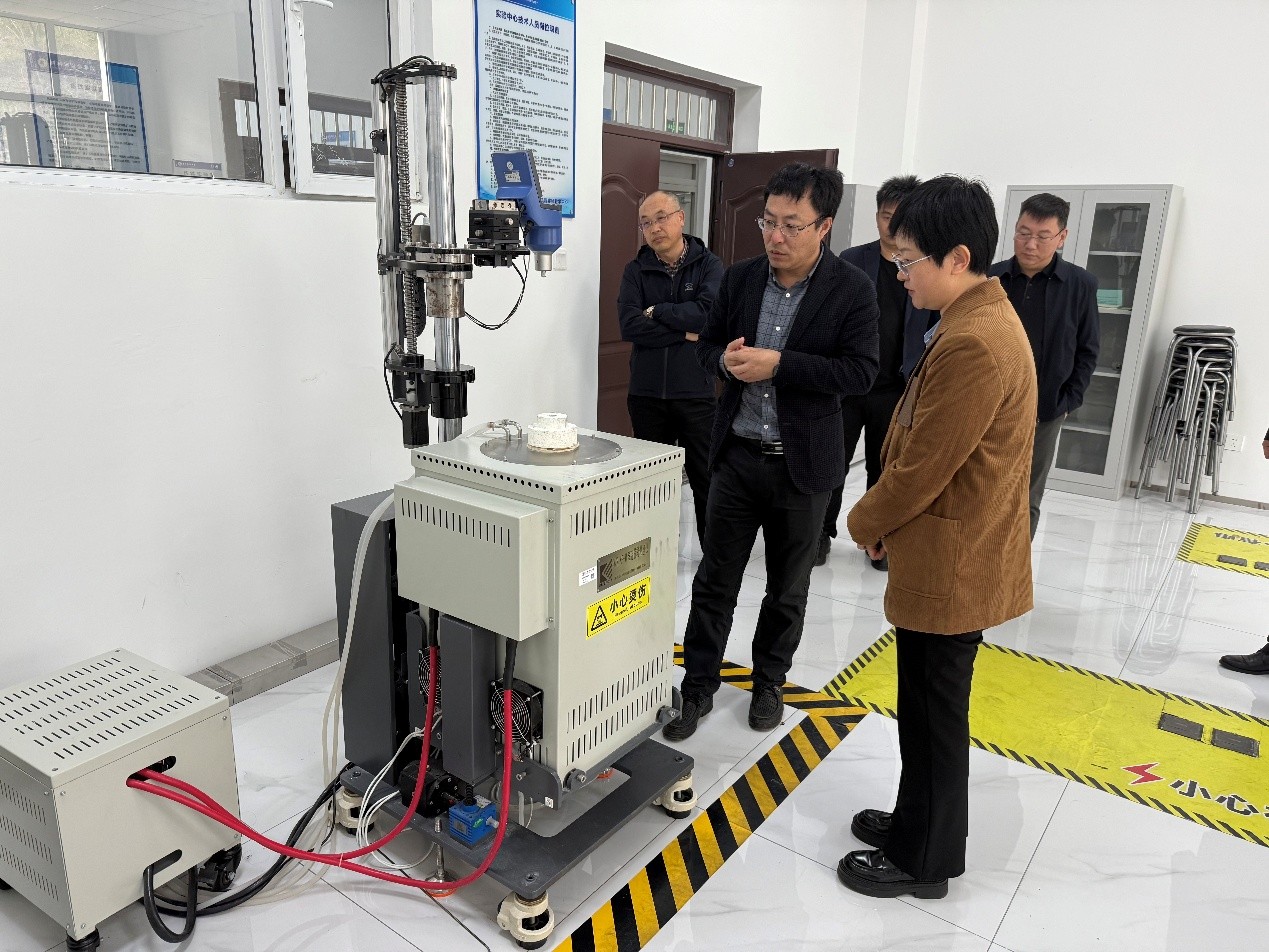 调研结束后,高姝娜一行前往学院铁钢轧实验室参观考察。在参观过程中,学院院长艾新港详细介绍了实验室的研究方向、科研成果及应用前景。高株娜对实验室在钢铁行业等领域取得的成绩表示认可,鼓励学院进一步发挥科研优势,为学科发展与行业进步贡献力量。
