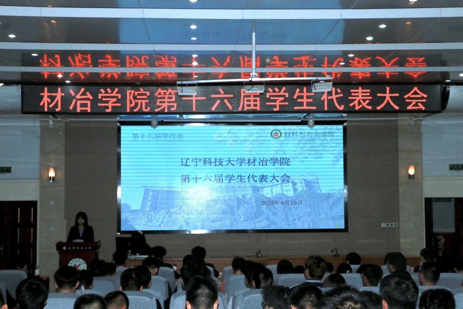 2025年9月10日,J9平台材料与冶金学院在图书馆二楼报告厅隆重召开了第十六届学生代表大会。大会审议并通过了第十五届学生会工作报告,选举产生新一届学生会、新闻网络中心成员。团委书记徐跃鸣、第十五届学生会、新闻网络中心工作人员及学生代表参加本次大会。