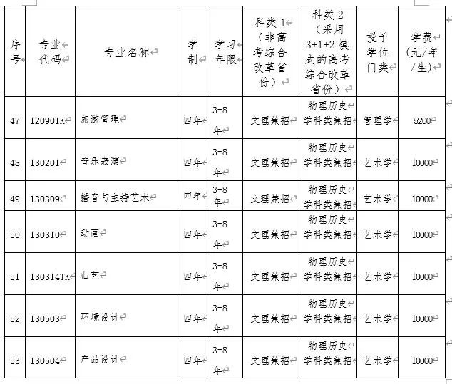 艺术类:学校艺术类各专业执行各省级招生考试机构统一规定的批次设置以及投档原则。使用生源所在省份组织的相应艺术类专业统考(联考)成绩,要求考生艺术类专业相应科目统考(联考)成绩合格,符合考生所在省份艺术类投档条件。在征集志愿录取时,按照生源所在省份相关规定执行。