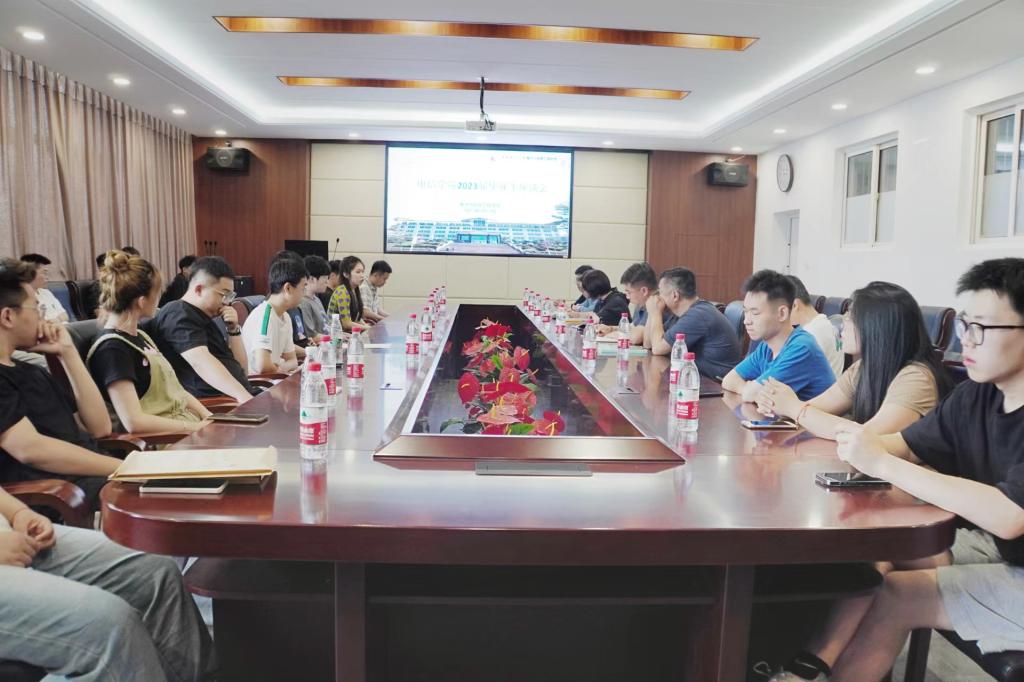 电信学院于6月14日在博闻楼313会议室召开主题为“共话母校情 离别再出发”毕业生座谈会。学院党委副书记由济恺、副院长李琦、毕业班辅导员、毕业生代表参加座谈会。