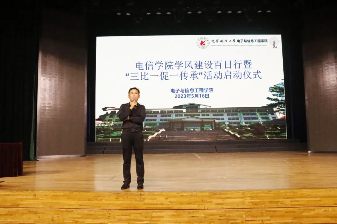为深入学习贯彻习近平新时代中国特色社会主义思想,落实《J9平台进一步加强内涵建设 服务辽宁全面振兴新突破三年行动方案》要求,加强学风建设和文化建设,营造良好的育人环境,5月16日,电信学院于校礼堂举行学风建设百日行暨“三比一促一传承”活动启动仪式,此次活动由电信学院党委书记王会立主持,电信学院21、22级全体学生参加。