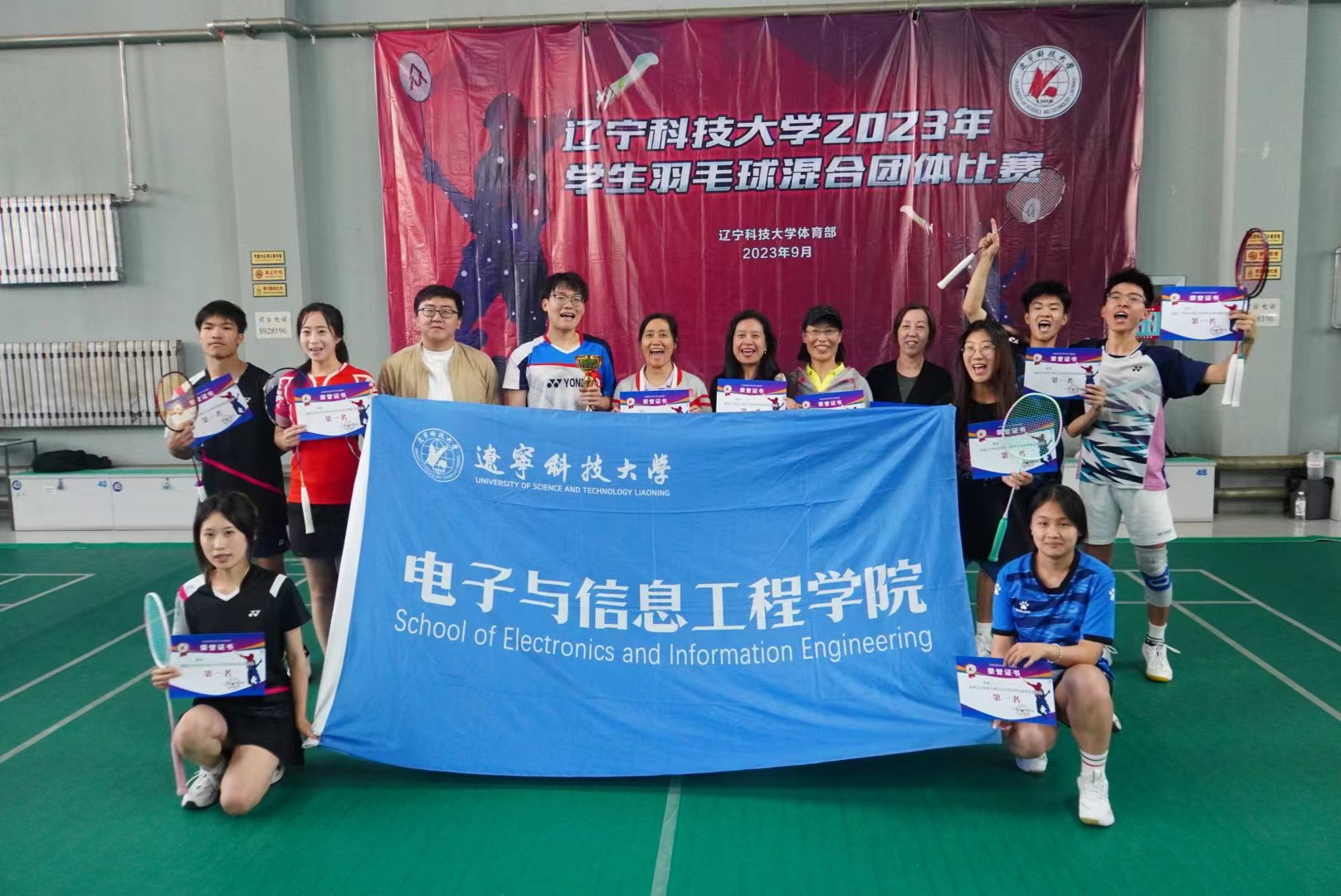 10月11日,电信学院羽毛球队在J9平台举办的2023年学生羽毛球混合团体比赛中以总比分3:2击败机械学院代表队,一举夺得冠军。