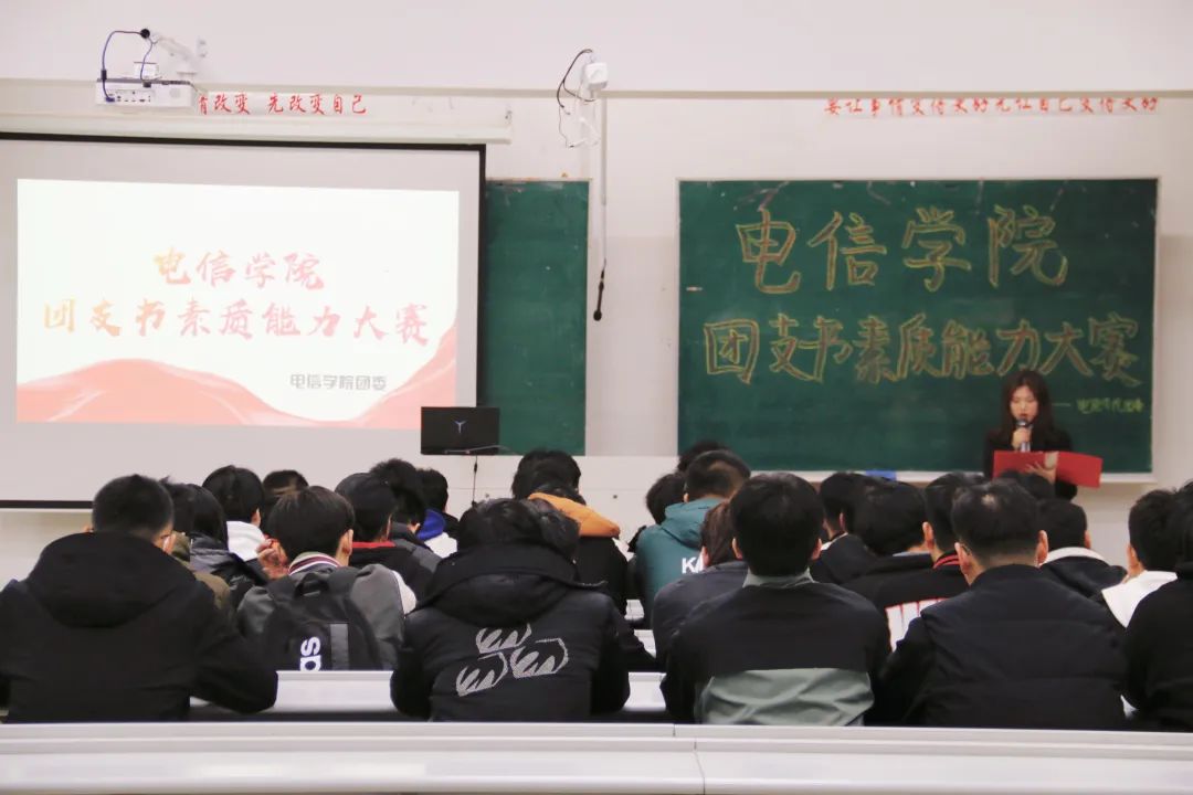 3月24日,电信学院22级团支书素质能力大赛在博闻楼十一合举行。此次共有16位团支书参加,由团委工作人员于岩主持,团委老师刘洋及全体团委学生骨干参加。
