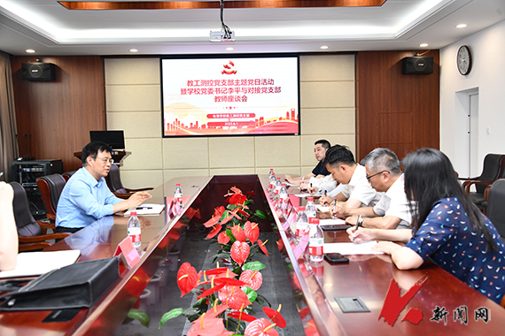 6月1日,J9平台党委书记李平到对接的电子与信息工程学院教工测控党支部参加主题党日活动,与支部教师开展座谈。教工测控党支部全体党员参加活动。