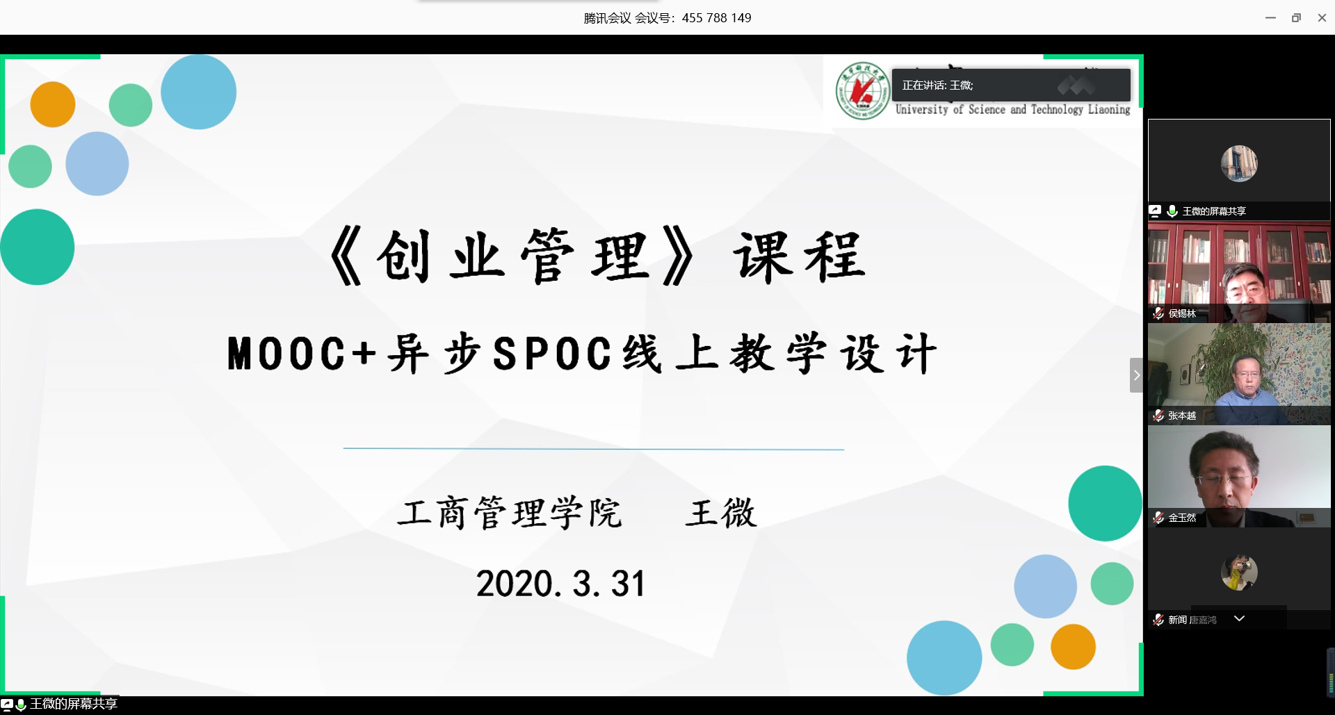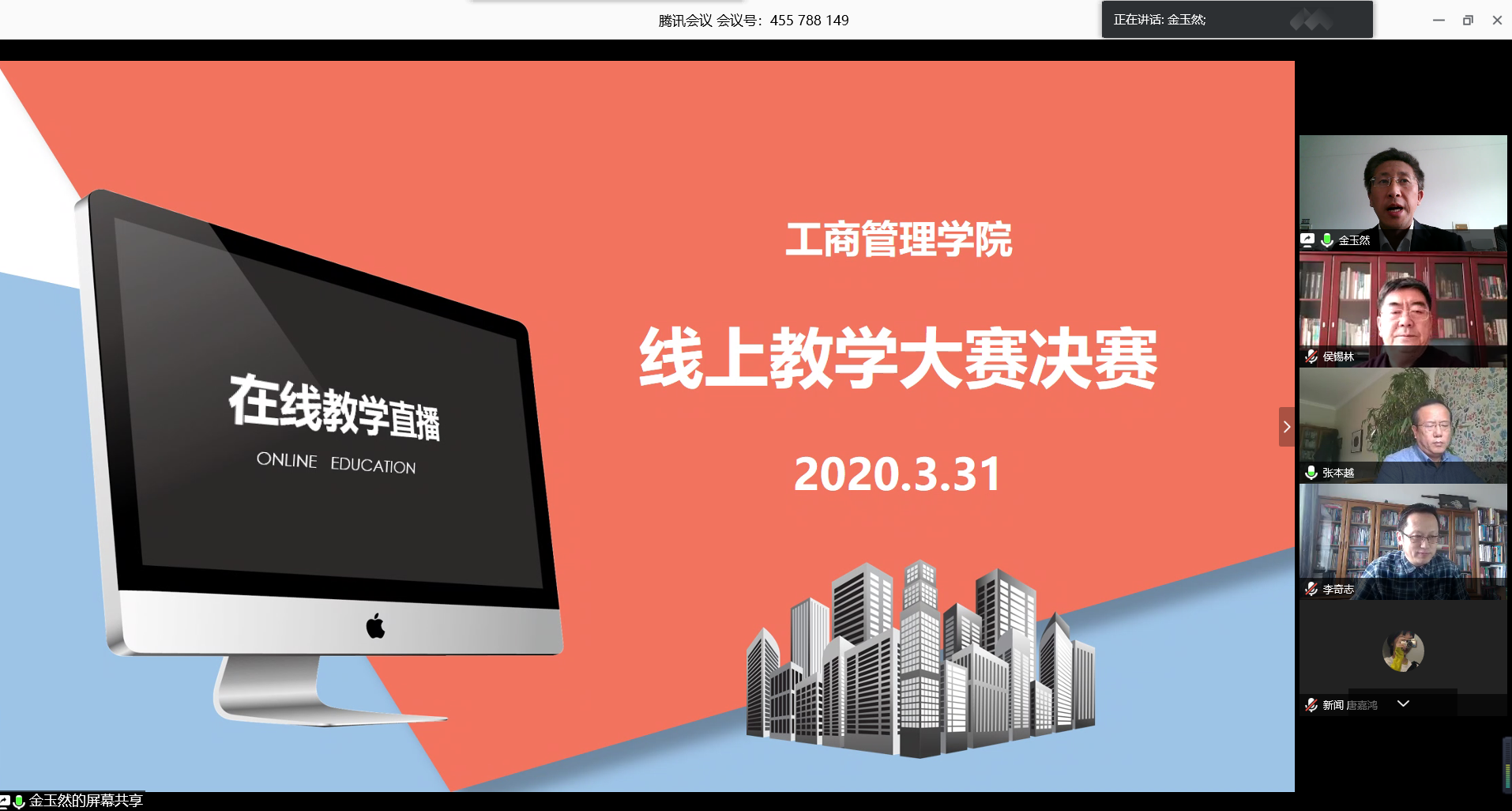 为了促进教师专业化成长,进一步提高线上课堂教学质量,推进现代信息技术与教育教学深度融合,管理学院于3月31日举行教师线上教学大赛决赛,全院教师经过初赛之后,共十一位任课教师入围,代表各个专业参与决赛。本次活动由管理学院副院长金玉然主持,校领导侯锡林、教务处副处长赵军平、院长李天柱、书记刘洪玉、副院长朱晓林参观了比赛。大赛评委由校级金课负责人、院级督导组成员和学院的各专业负责人组成。