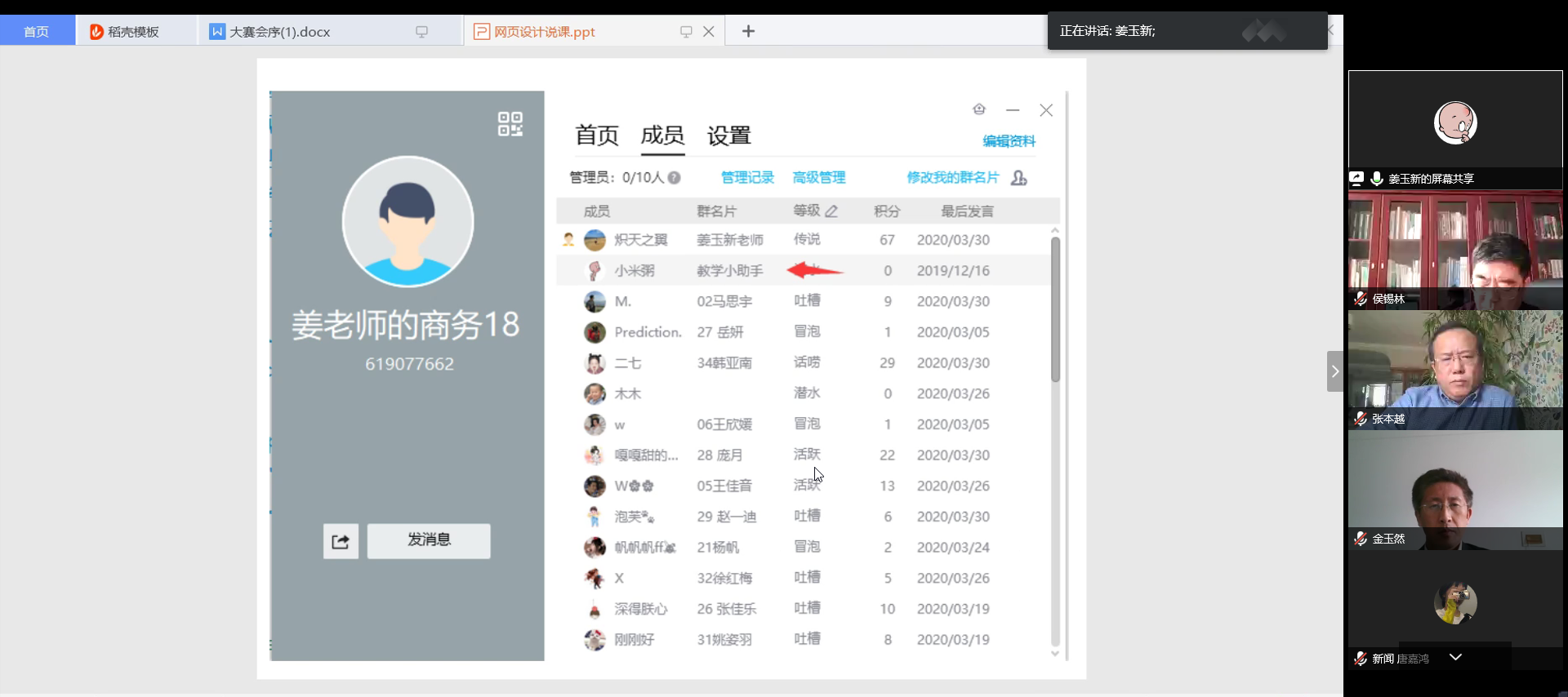 为参加本次大赛,各位教师精心准备教学设计,精炼课堂教学重点。比赛历时4个小时,各位参赛教师教学各具特色,巧妙地借助在线授课教学手段、新颖灵活的教学方法,将自己的教学风格、教学水平融入到提前研好的教学设计中,准备的内容也都发挥得淋漓尽致。房丽娜的大数据分析,虽然作为一门新的课程,但也在不断进行新的尝试,为确保达到课堂的高效进行。虽然安锋年龄较长,但对教学的投入给其他老师们很深刻的印象。张本越所提的“四点”,都切身联系课堂的实际,结合自己的思想,以达到知识的完美呈现。姜玉新为网上授课准备了许多先进的设备,其中小机器人更是新颖,非常方便线上讲课。柳光露也为网课想出了很多新方法,保证了课程的顺利进行。