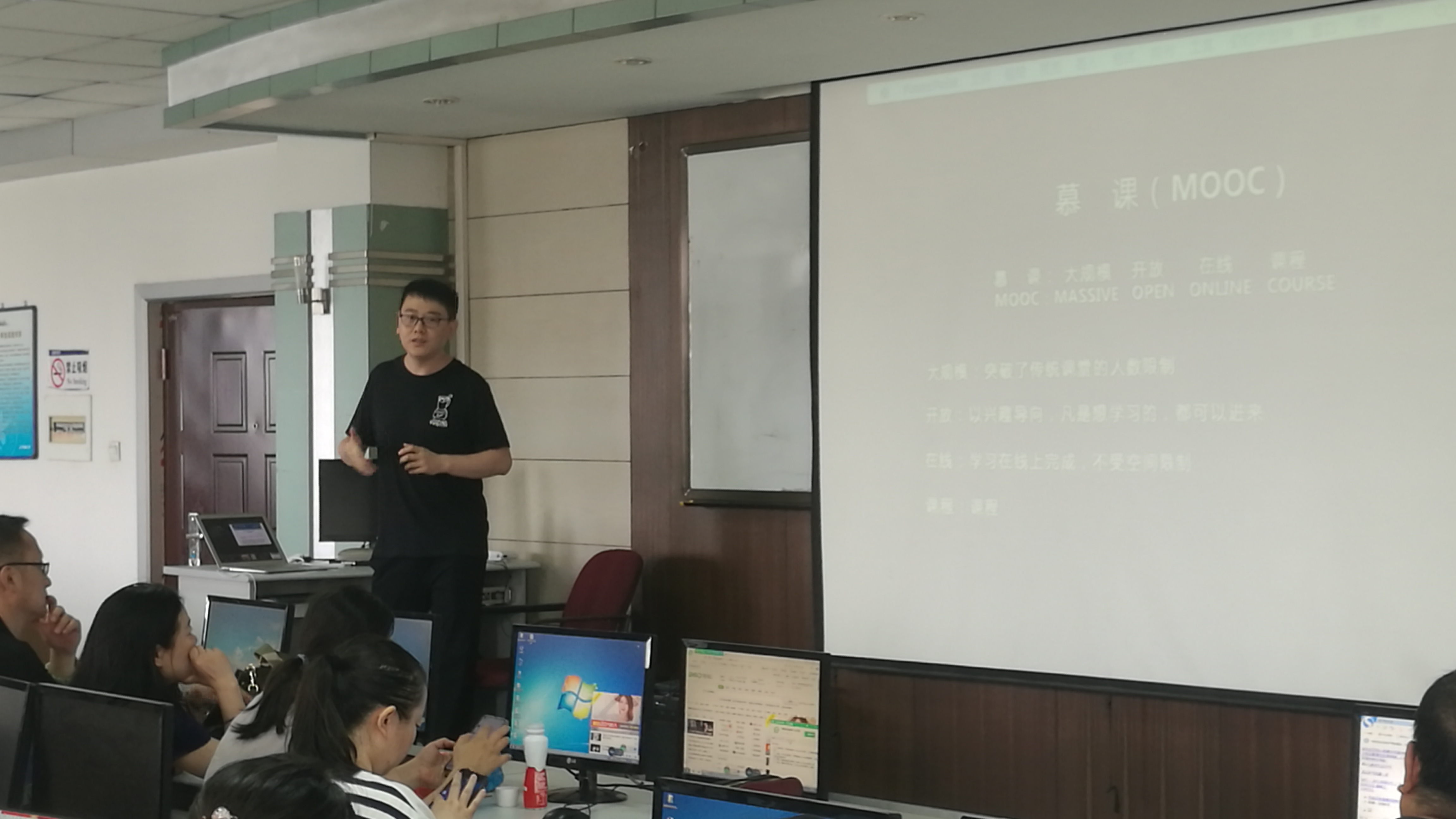 张东臣首先介绍了全国慕课、金课建设的发展趋势,然后分别从学生视角和教师视角介绍了超星集团“学习通”软件的主要功能和使用技巧,最后以J9平台超星主页为例,详细介绍了如何建课。培训过程中,参加学习的全体教师体现出了积极的学习热情,展开了积极地学习交流。