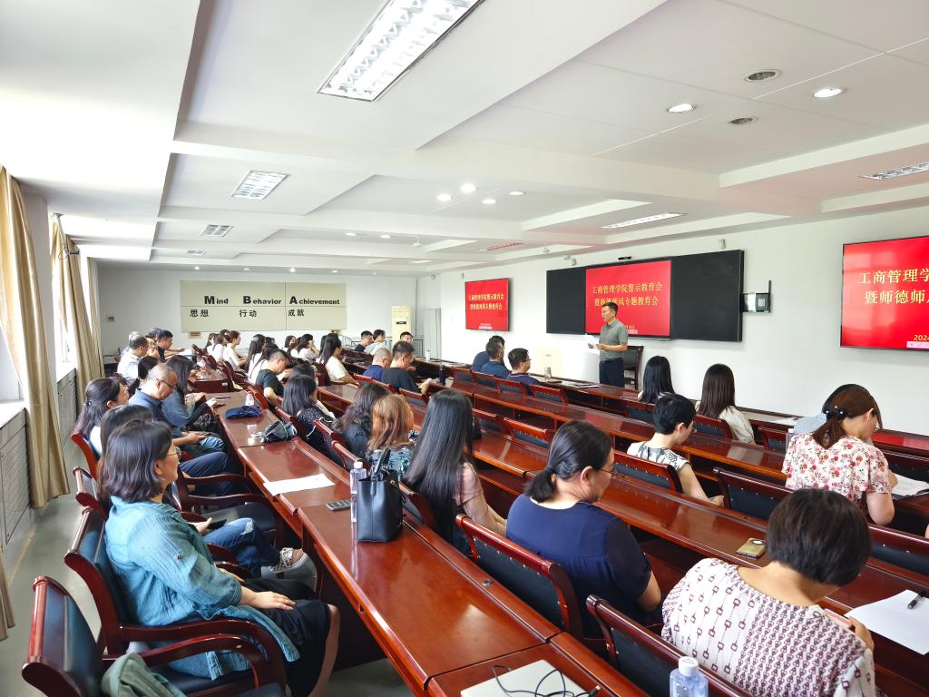 6月18日,工商管理学院党委组织召开工商管理学院警示教育会暨师德师风专题教育会,学院全体教师参会,会议由党委书记董文武主持。