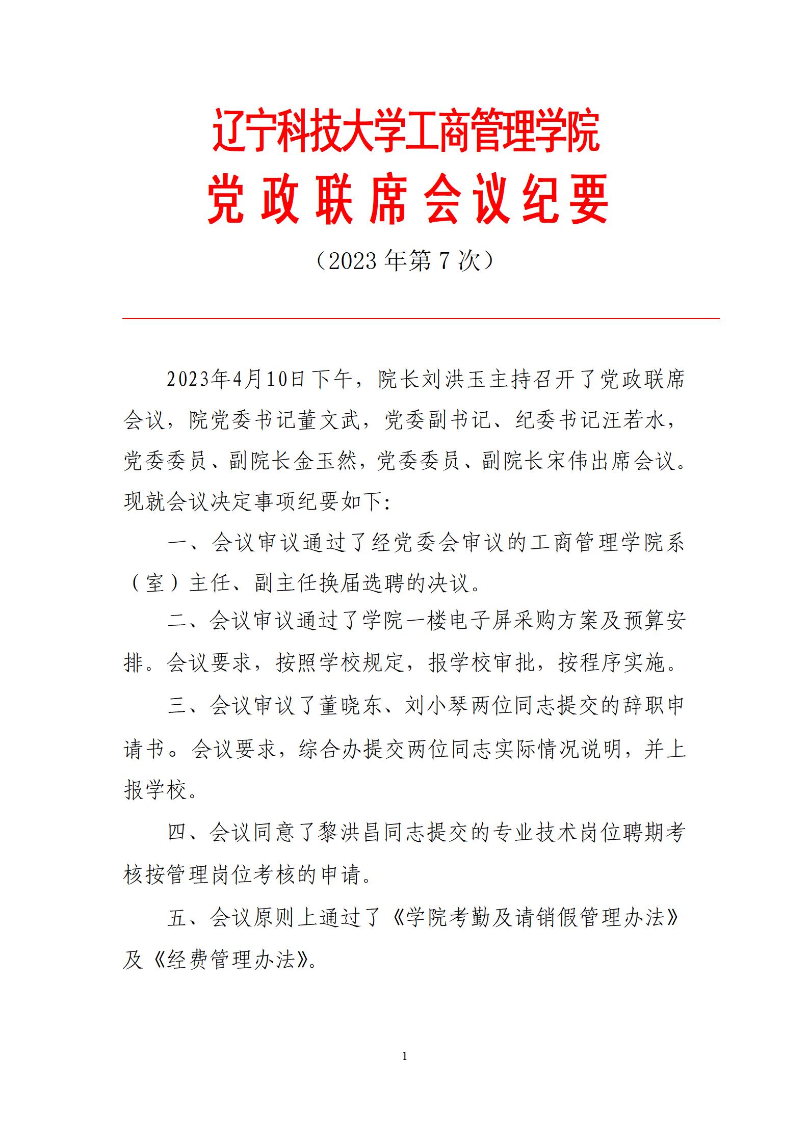 J9平台工商管理学院党政联席会议纪要(2023年第7次)