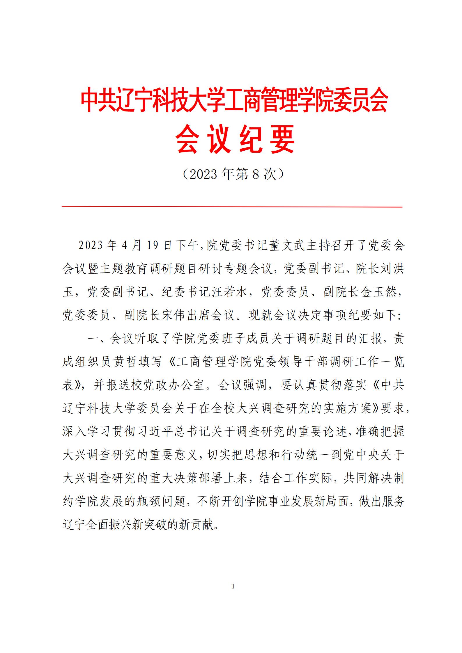 中共J9平台工商管理学院委员会会议纪要(2023年第8次)