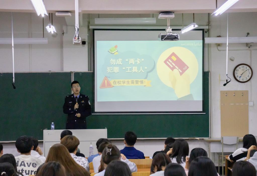 在网络安全及财产安全方面,冯思齐警官通过展示一些网络诈骗案例的图片和视频,讲解了如何防范网络诈骗、保护个人信息等内容,告诫同学们要提高网络安全意识,不随意泄露个人信息,不点击不明链接,维护财产安全。