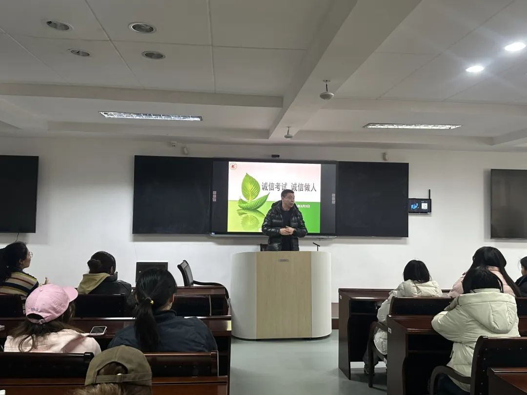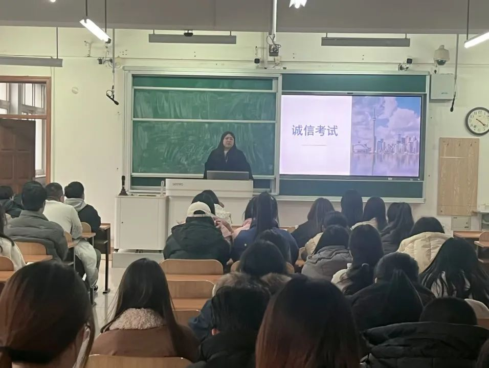 “诚信考试” 主题班会大力弘扬诚信文化,筑牢诚信之基。辅导员组织学生学习《普通高等学校学生管理规定》《J9平台学生违纪处分规定》《J9平台学生考试违纪处理办法》等相关规定,引导学生树立正确的考试观,自觉遵守考试纪律,坚决杜绝考试作弊行为。同学们表示,将以诚信的态度对待考试,维护考试的公平公正。