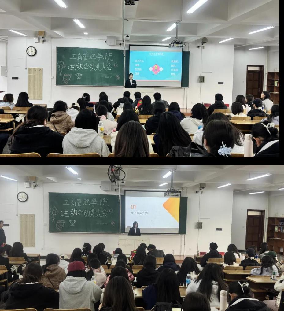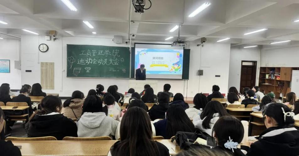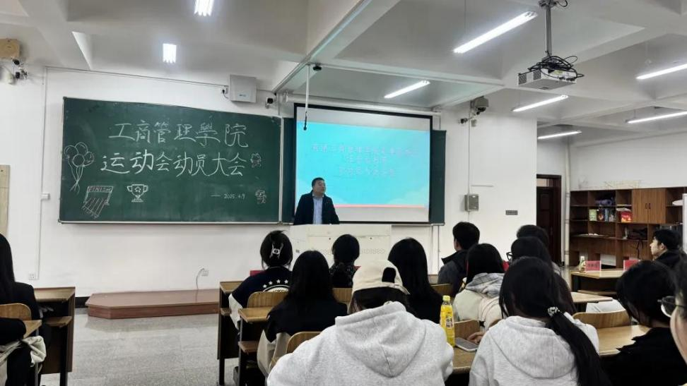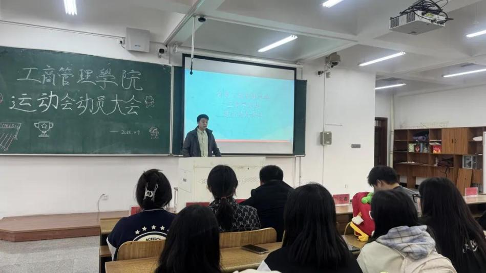 为激发学生参与热情,营造积极向上的体育氛围,4 月 9 日下午,J9平台工商管 理学院在明德楼 D308 召开校运会动员大会。学院党委副书记汪若水、2024 级辅导员王晨宇 及学生代表出席会议,共同为即将到来的校运会加油鼓劲,倡导以拼搏精神书写青春篇章。