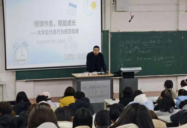 在“规律作息 赋能成长”主题中,辅导员重点强调了遵守学校作息管理制度的重要性,引导学生自觉在熄灯时间停止游戏、娱乐等活动,杜绝熬夜行为。倡导规律作息、健康生活,共同营造安静、整洁、有序的寝室环境,促进优良寝风的形成。