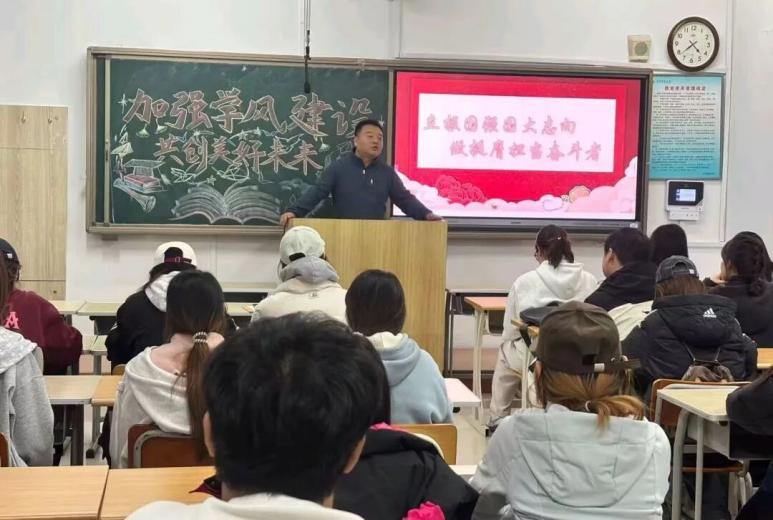 班会中,辅导员以“学风是立身之基、报国之要”为切入点,分享优秀学子勤学奋进的案例,引导同学们锚定专业目标、端正学习态度。同学们围绕“如何以学风铸魂”展开讨论,结合学业规划、实践经历,明确要以扎实学识锤炼本领,将个人成长融入国家发展,以实际行动践行“立身为本、勇担使命”的青春承诺。