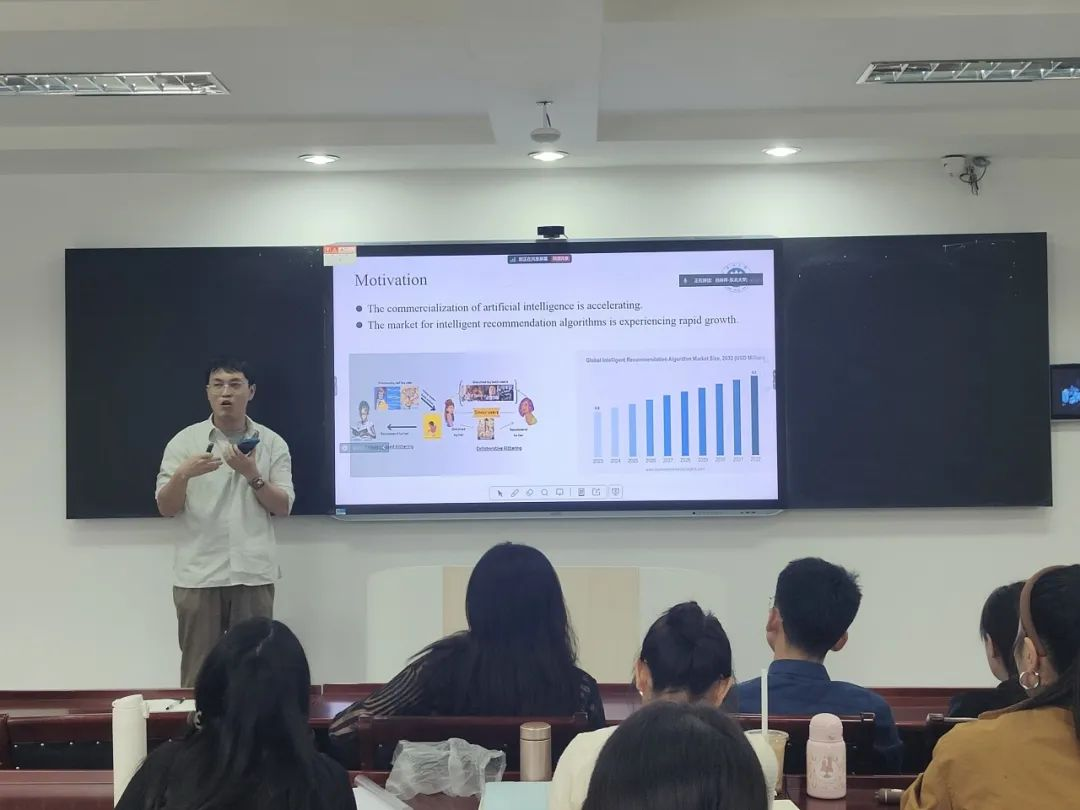9月18日, 工商管理学院“低碳商业与营销创新”导学团队在明信楼B511举行本学期第一次学术交流活动,由管理学院朱晓林教授主持,邀请了东北大学管理学院孙洋博士和吕林祥博士出席做报告分享,该团队全体研究生通过线上或线下方式参加。此次学术交流活动旨在促进跨学科知识分享,深化对新兴技术在商业领域的应用研究