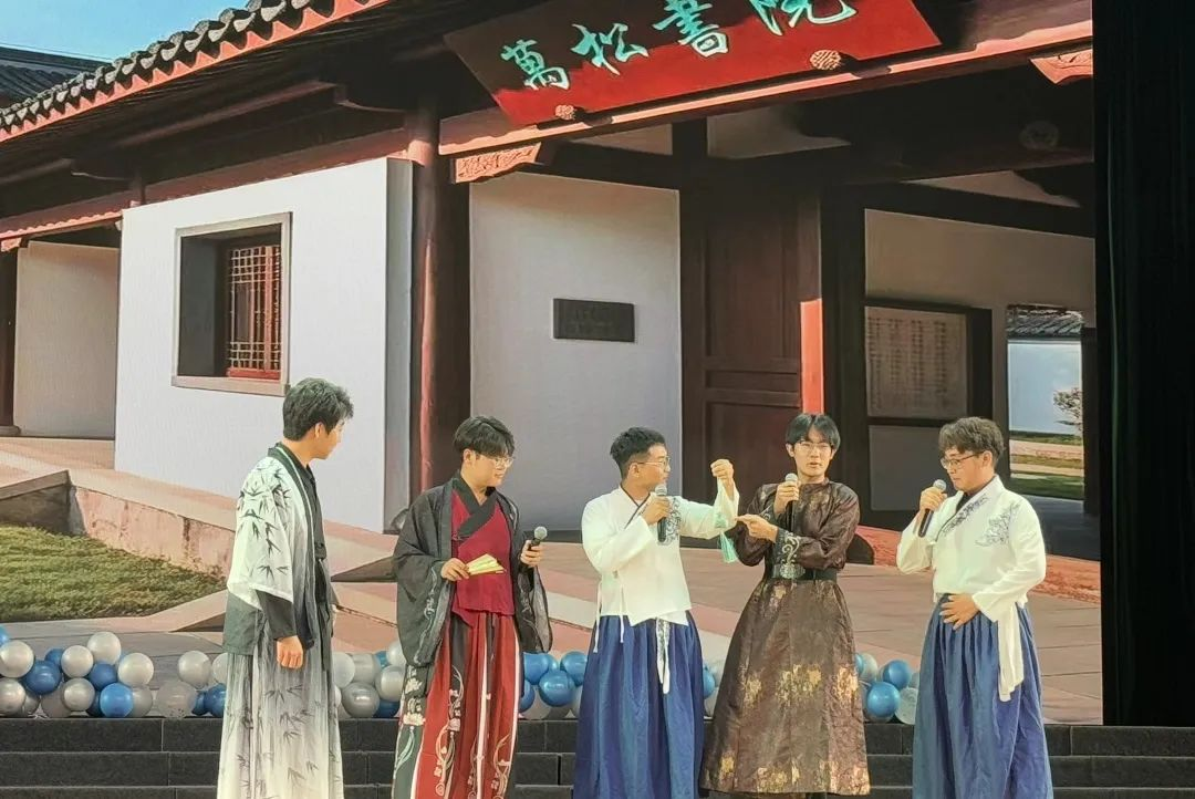 材冶学院《最后一页》《那些年》倾诉对校园生活的眷恋。笑琢俱乐部《成长的烦恼》以幽默引发共鸣,《万松书院》表演生动吸睛赢得全场掌声;管理学院《Yes! OK!》舞出青春朝气,汀兰民乐社《权御天下》奏响壮志豪情。最后,教师献唱送祝福,全场共唱《重返十七岁》,在对往昔的怀念与未来的期许中,将晚会气氛推向高潮,为青春岁月留下温暖而难忘的注脚。