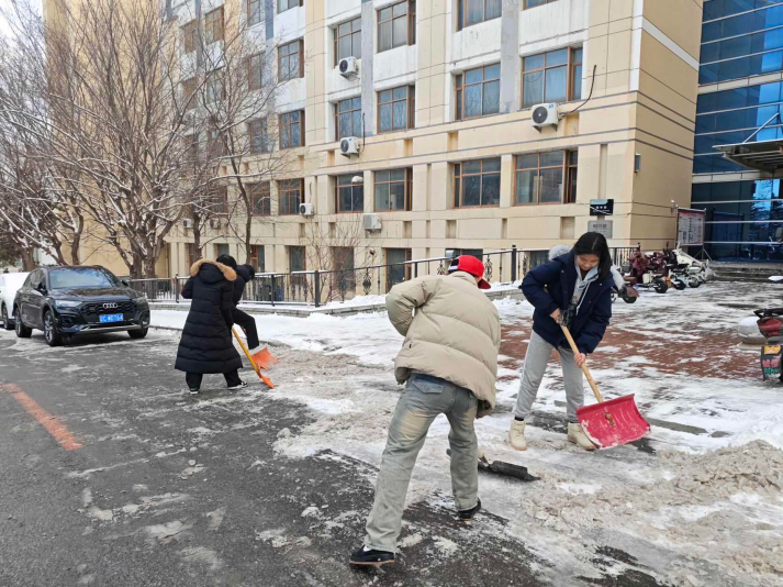 初雪漫校园,青春赴新程。随着冬日首场降雪降临,校园道路被积雪覆盖,给师生出行带来诸多不便。工商管理学院以雪为令、闻雪而动,开展除雪活动,用铁锹与扫帚为校园开辟安全通道,在寒风中书写新时代青年的奉献与热忱。 活动通知一经发布,学院学生积极响应、踊跃报名。除雪现场,尽管寒风凛冽、积雪深厚,但大家热情高涨、分工明确:有的挥舞铁锹破冰除雪,有的手持扫帚清扫残雪,有的默契配合搬运雪堆,现场一派热火朝天的劳动景象。这场除雪活动,成了新生们最生动的“集体劳动课”——从一开始的陌生拘谨,到后来的默契配合,短短几个小时,凝聚力就在扫雪的进程中悄然形成。正是同学们的辛勤付出,一条条整洁通畅的道路逐渐显现。