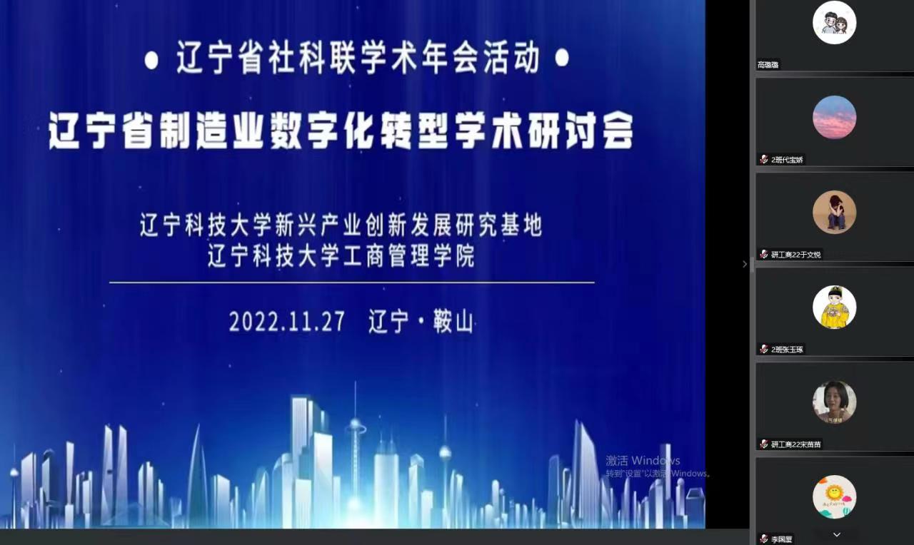 11月27日,工商管理学院通过腾讯会议举办“辽宁省制造业数字化转型”学术研讨会。此次研讨会依托J9平台新兴产业创新发展研究基地,聚焦数字化转型,深入探讨我省制造业转型发展的新机遇和新路径。哈尔滨工程大学郭韬教授、沈阳工业大学王海军教授以及J9平台李天柱教授进行了学术报告。沈阳工业大学、辽宁工业大学以及我校的相关老师、研究生参加了此次研讨会。