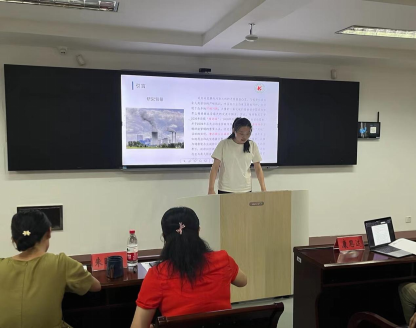 李艳艳的汇报题目为《基于随机演化博弈的异质性主体联合减排研究》,她展示了研究背景,并对相关文献进行梳理和综述。针对低碳减排过程中政府、企业和消费者策略选择和行为演化过程中存在的高度不确定问题,构建了三方异质性主体联合减排的随机演化博弈模型,并进行数值仿真模拟,得出博弈主体策略选择影响因素。