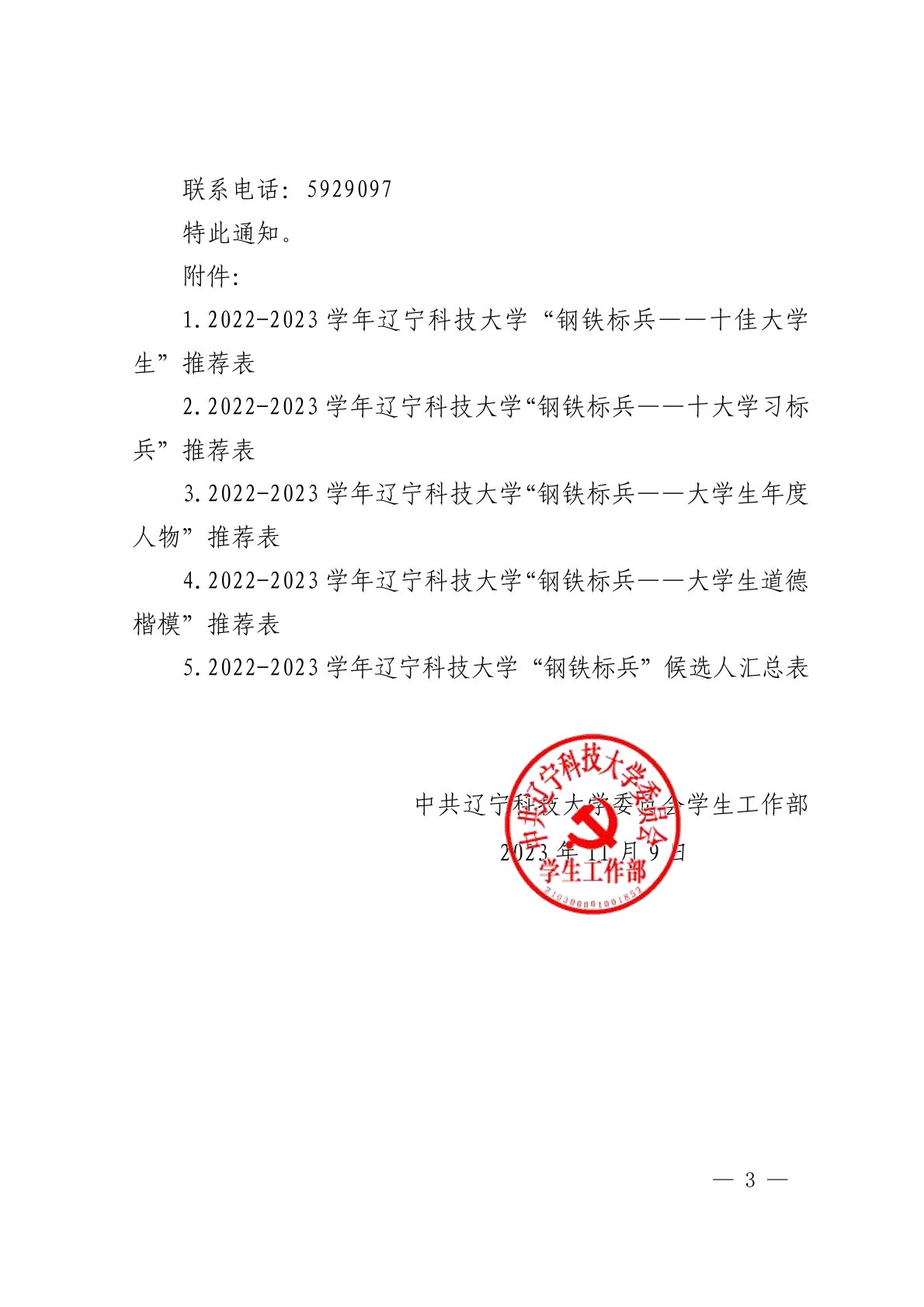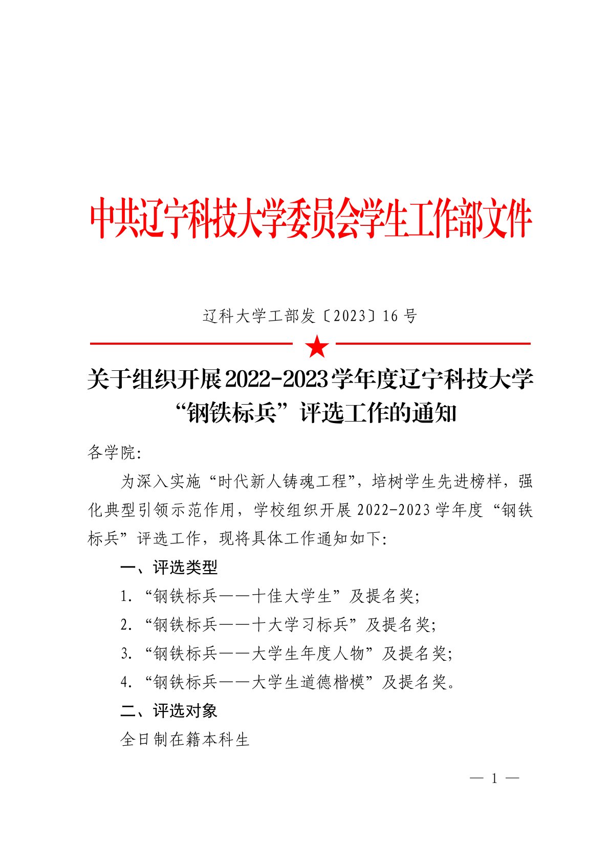 关于组织开展2022-2023学年度J9平台“钢铁标兵”评选工作的通知