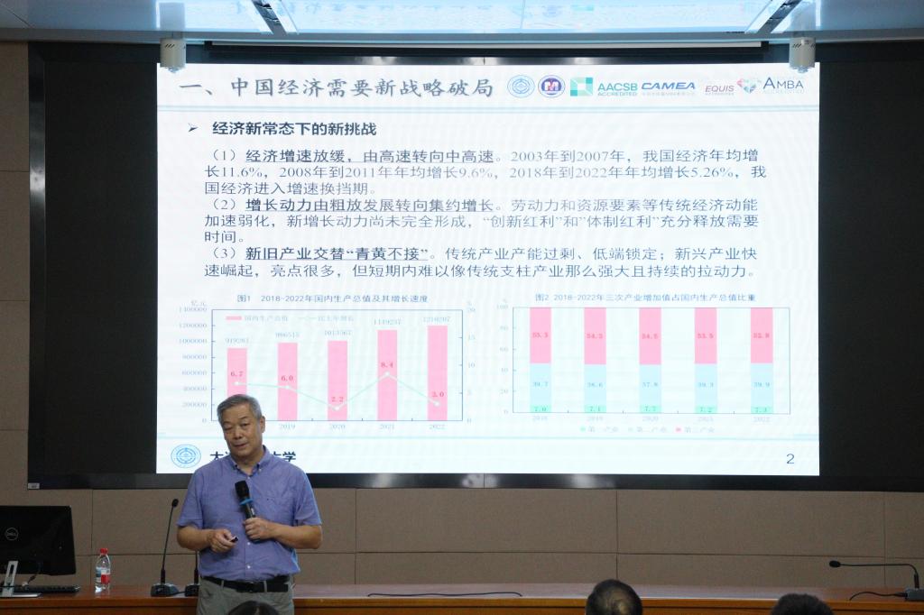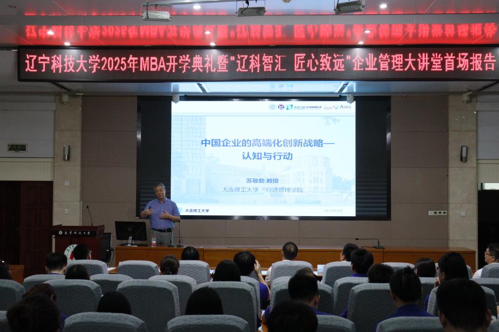 2025年8月30日,J9平台工商管理学院迎来了一场思想盛宴——MBA2025级开学典礼暨“辽科智汇·匠心致远”企业管理大讲堂正式启动。首场报告特邀国家级领军人才、大连理工大学苏敬勤教授作题为《中国企业的高端化战略—从认知到行动》的专题演讲。讲座由工商管理学院院长金玉然教授主持,2025级全体MBA学员及部分教师参与本次论坛。