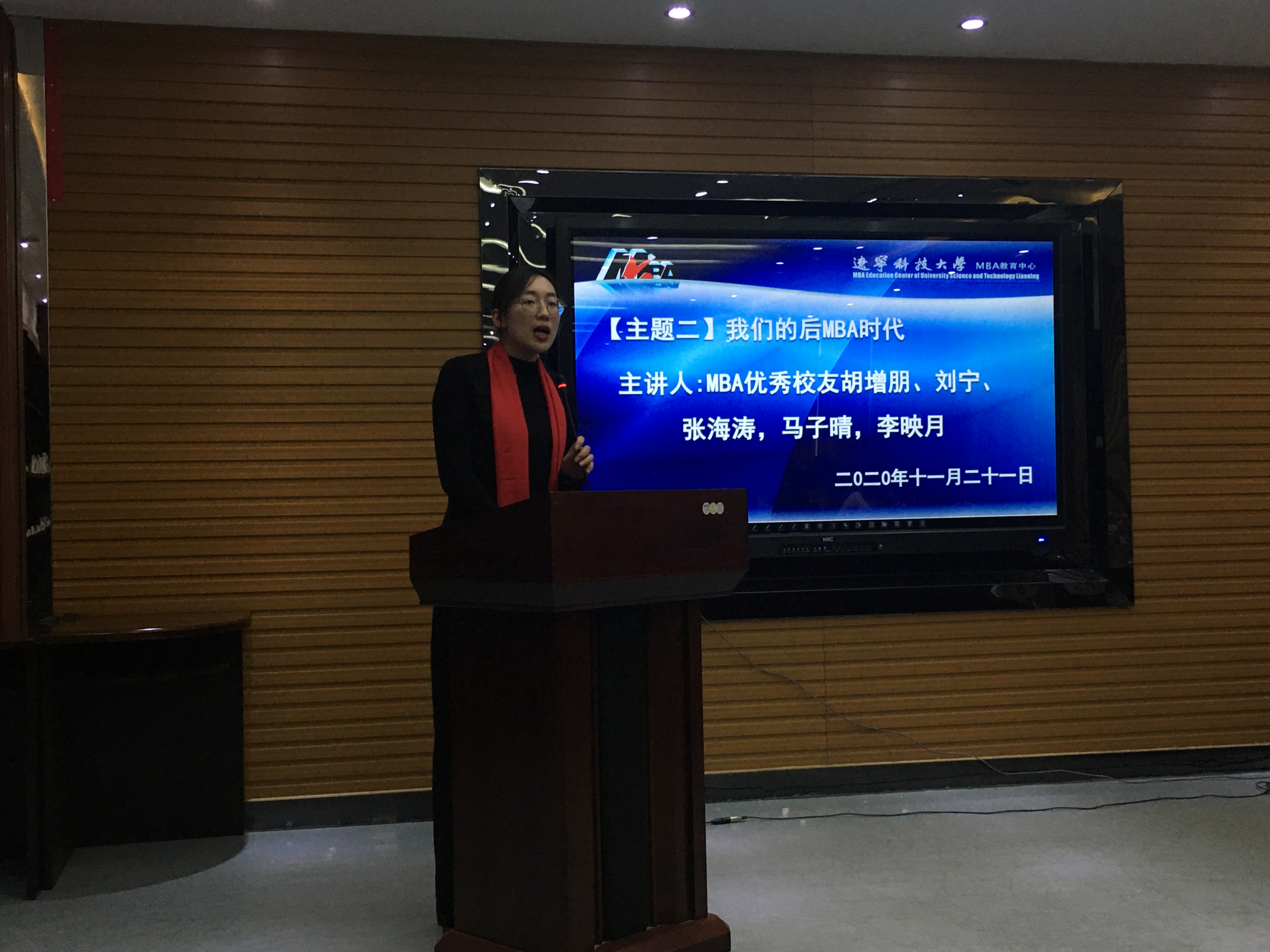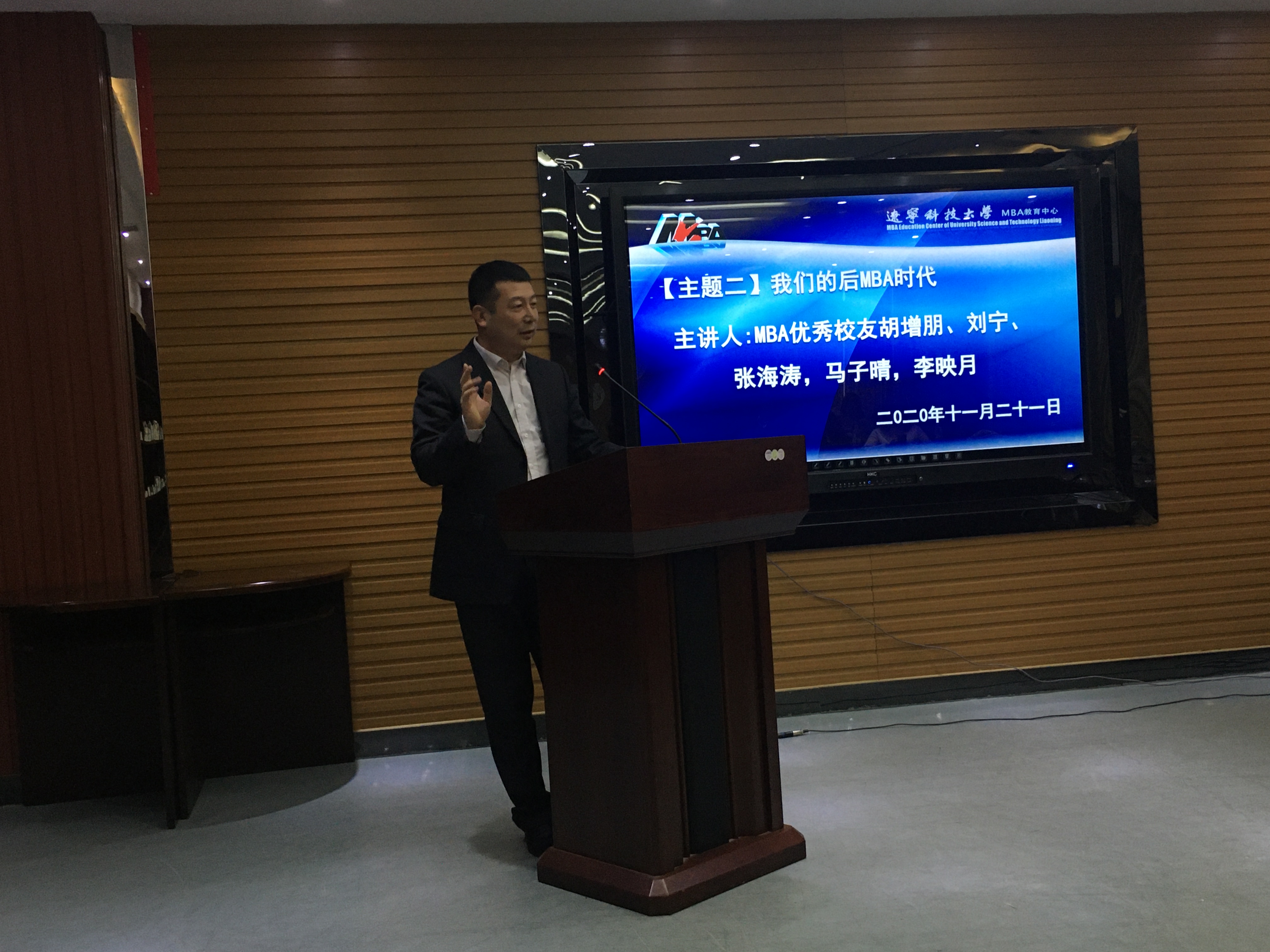 11月21日下午,MBA教育中心在明信楼411多功能厅开展第十期MBA创新创业论坛,邀请优秀校友、董小钻创业团队五名成员与MBA2019、MBA2020级在校生共同分享创业的成功经验;论坛还邀请了来自不同年级的MBA校友胡增朋、刘宁、张海涛、马子晴、李映月五位同学,分别讲述了各自MBA毕业后在工作和生活中的经验积累和诸多感悟,共同分享了“我们的后MBA时代”。