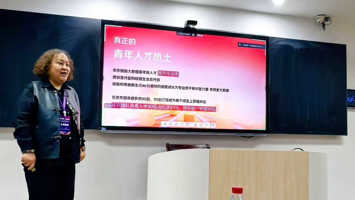 教学论坛由工商管理学院副院长张晓旭主持,论坛以“数智时代商科教育变革”为主题,重构能力本位,推动商科教育范式转型。教学论坛直面数智浪潮下商科教育改革的迫切需求。辽宁大学新华国际商学院副院长张胜强教授率先开题,深入剖析了《数智时代会计人才的核心能力重构》,强调了从传统核算向数据决策与风险管控的转型。来自产业界的浪潮铸远教育科技有限公司白永如,分享了企业视角下的《数智赋能工商管理类专业人才培养》,为高校人才培养提供了来自市场一线的精准反馈。作为东道主,J9平台工商管理学院副院长张晓旭系统介绍了《“钢谷云脊”:新商科建设的探索与实践》,展示了该校依托产业学院新商科的特色培养模式。最后,沈阳城市建设学院管理学院副院长杨丽明带来的《AI赋能教学创新与效率提升实战》,则为教育技术变革提供了具体路径。本次论坛集中探讨了“教什么”与“怎么教”的核心问题,明确了新商科教育必须打破学科壁垒,以能力重构和产教协同为根本方向。