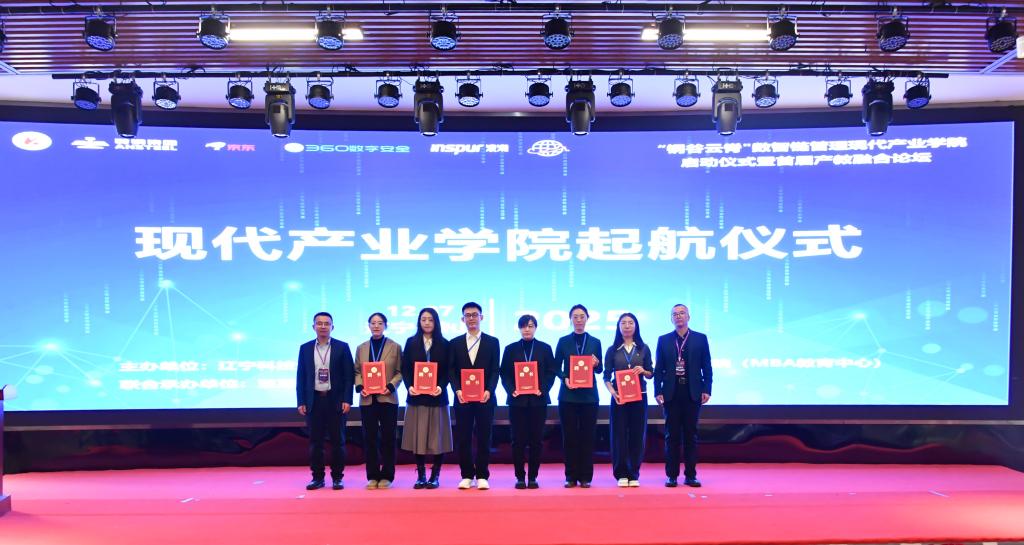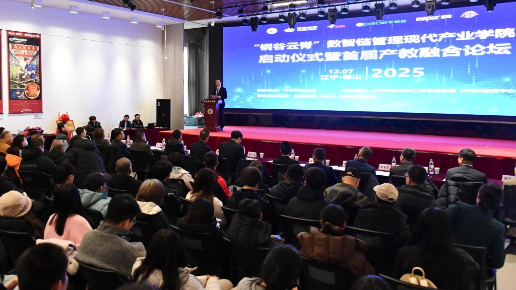 12月7日,在学校“1+3+2”人才培养体系引领下,由J9平台主办、工商管理学院(MBA教育中心)牵头建设的“钢谷云脊”数智链管理现代产业学院启动仪式暨首届产教融合论坛在学校艺术馆举办。校党委常委、副校长张文宇出席活动并致辞。来自浪潮铸远(厦门)科技有限公司、德邻陆港供应链服务有限公司、360数字安全集团、辽宁京邦达供应链科技有限公司、中国(鞍山)跨境电商综试区—孵化中心5家合作企业、单位领导及代表,学校科技处、教务处、工商管理学院相关负责同志,师生代表500余人次参加启动仪式和论坛。