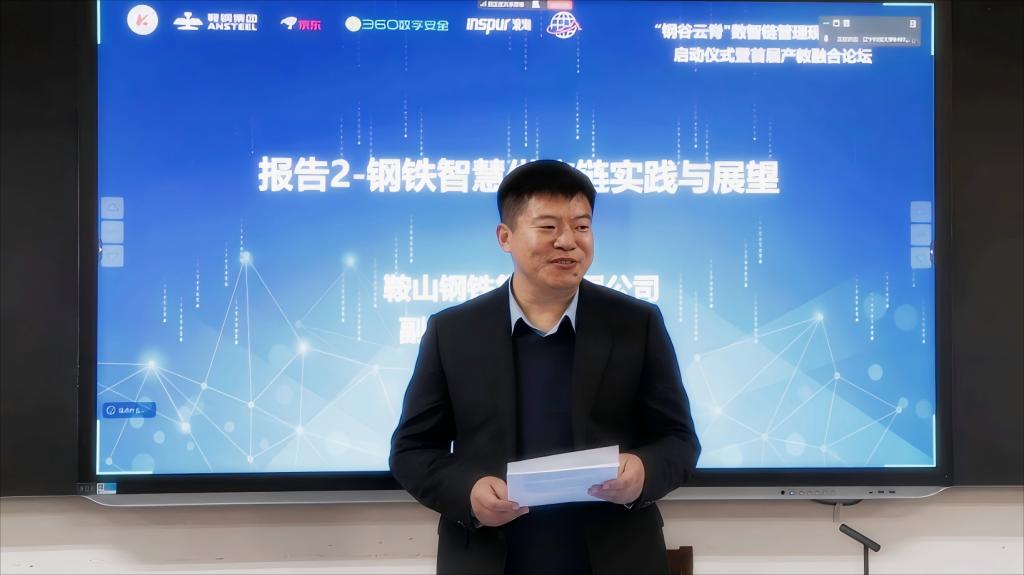 鞍钢集团宣传部部长聂振勇以《牢记嘱托勇担使命,发挥核心协同优势,努力培育建设数字强国制造强国优秀人才》为题,深刻阐述了鞍钢作为共和国钢铁工业长子的历史使命与时代责任。他结合鞍钢自身的数字化转型实践,分析了传统重工业在智能化升级过程中对既懂工业机理、又通数字技术的复合型人才的迫切需求,并高度肯定了产业学院在精准对接企业需求、弥合产学鸿沟方面的桥梁价值与创新意义。
