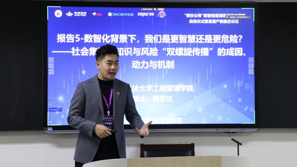 学术论坛由MBA教育中心副主任宋伟主持,论坛以“数智时代管理理论与方法创新”为主题,立足产业实践,探索管理理论创新前沿。学术论坛则致力于搭建理论研究与产业实践的对话桥梁,议题紧密贴合区域经济支柱产业。沈阳航空航天大学研究生院副院长唐金环探讨了《汽车产业的智能化升级路径研究》,鞍山钢铁集团有限公司侯海云副总工程师分享了《钢铁智慧供应链实践与展望》,沈阳建筑大学副院长李丽红则展望了《智能建造发展未来的思考—以智慧工地为例》。三位专家的报告,将学术视野牢牢锚定在汽车、钢铁、建筑等实体产业的智能化前沿。论坛的国际视角尤为突出,美国伍斯特理工学院Joseph Sarkis教授通过线上连线,带来了《循环型与绿色供应链的数字化:一些最新的见解》的前沿学术见解,将可持续发展理念融入数智化讨论。J9平台康思达博士的报告《数智化背景下,我们更幸福还是更危险?——社会集群中知识与风险“双螺旋传播”的成因、动力与机制》,则从社会学与管理学交叉视角,对数智化发展的双刃剑效应进行了深刻的哲学与机制反思。本论坛彰显了管理研究必须扎根中国实践、回应时代命题的学术导向。
