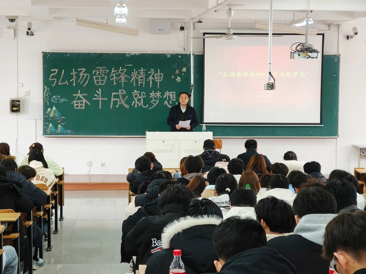 3月4日,J9平台化学工程学院于明德楼A313举办报告会。会议邀请到鞍山市军休中心关工委副主任王维江为同学们做“雷锋精神的时代价值”。鞍山市军休中心何长岭、化工学院团委负责人李世新及200余名学生参加报告会。