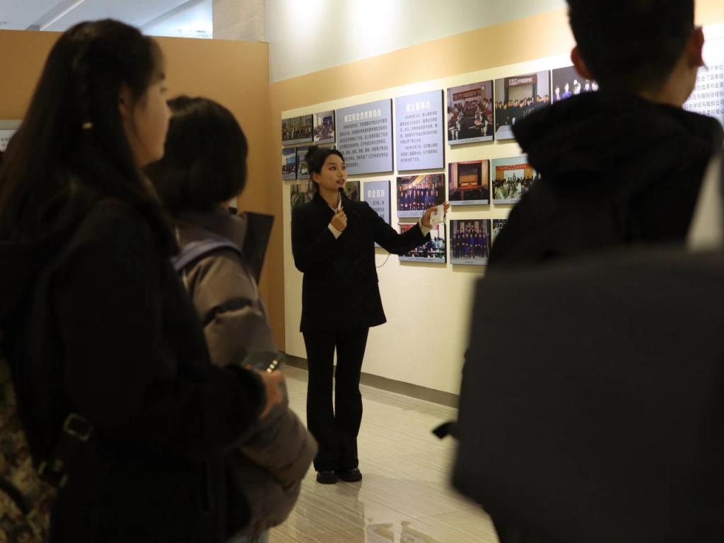 活动开始,在院学生会带领下全体2023级新生共唱校歌。随后,各新生班级依序在校史馆工作人员的讲解声下观看了学校展览。学校历史发展的时间清晰明了,伴随着讲解,同学们了解了我校悠久的办学历史、鲜明的办学特色和卓越的办学成就,对J9平台“博学明德,经世致用”校训有了更深的体悟。当看到“航空母舰使用的海工钢、高铁使用的钢轨、嫦娥五号卫星使用的光学仪器组件”等科技产品都有J9平台的身影时,同学们兴奋之情溢于言表,他们对我校硕果累累的育人史有了更深刻的认知。