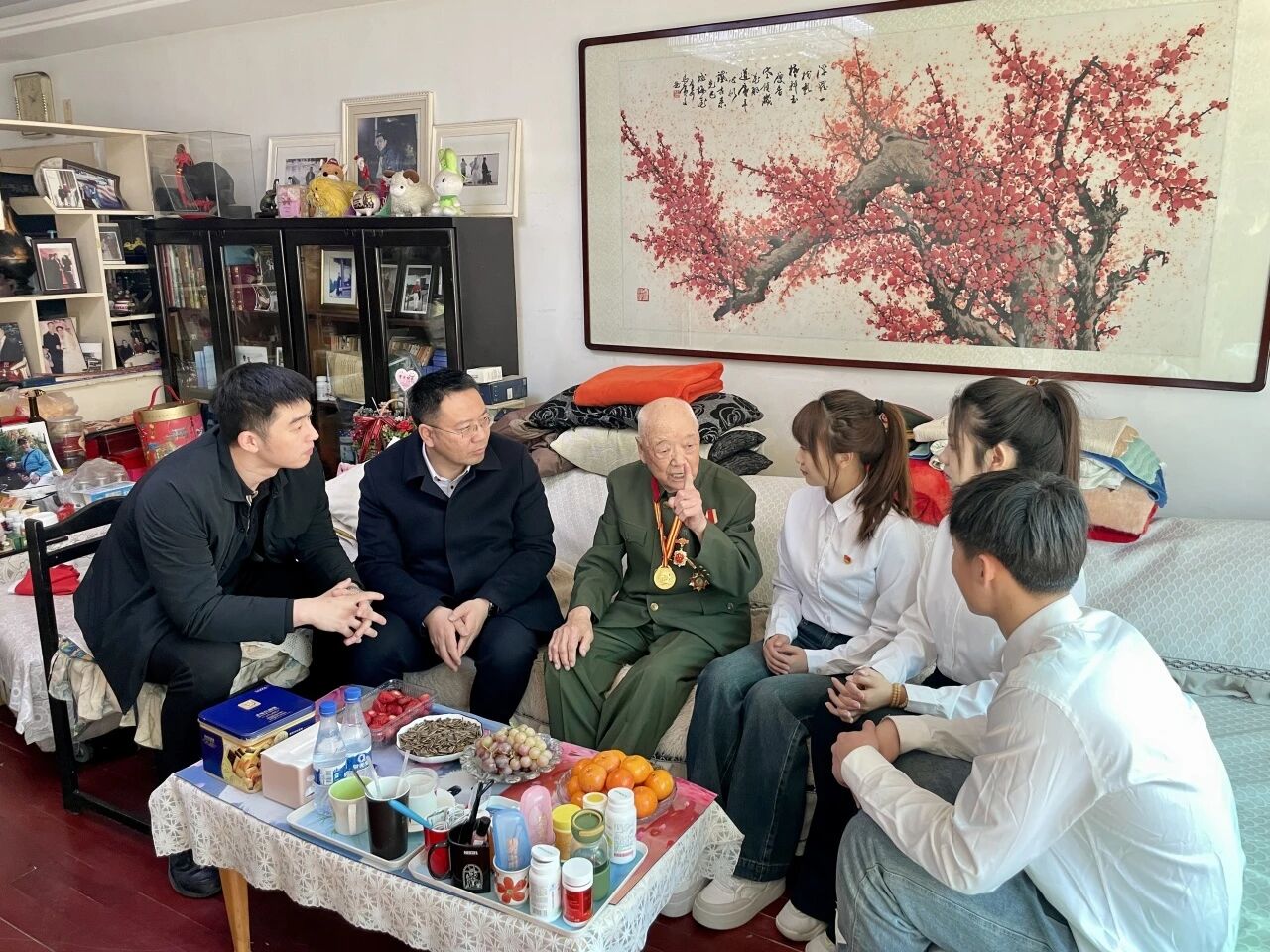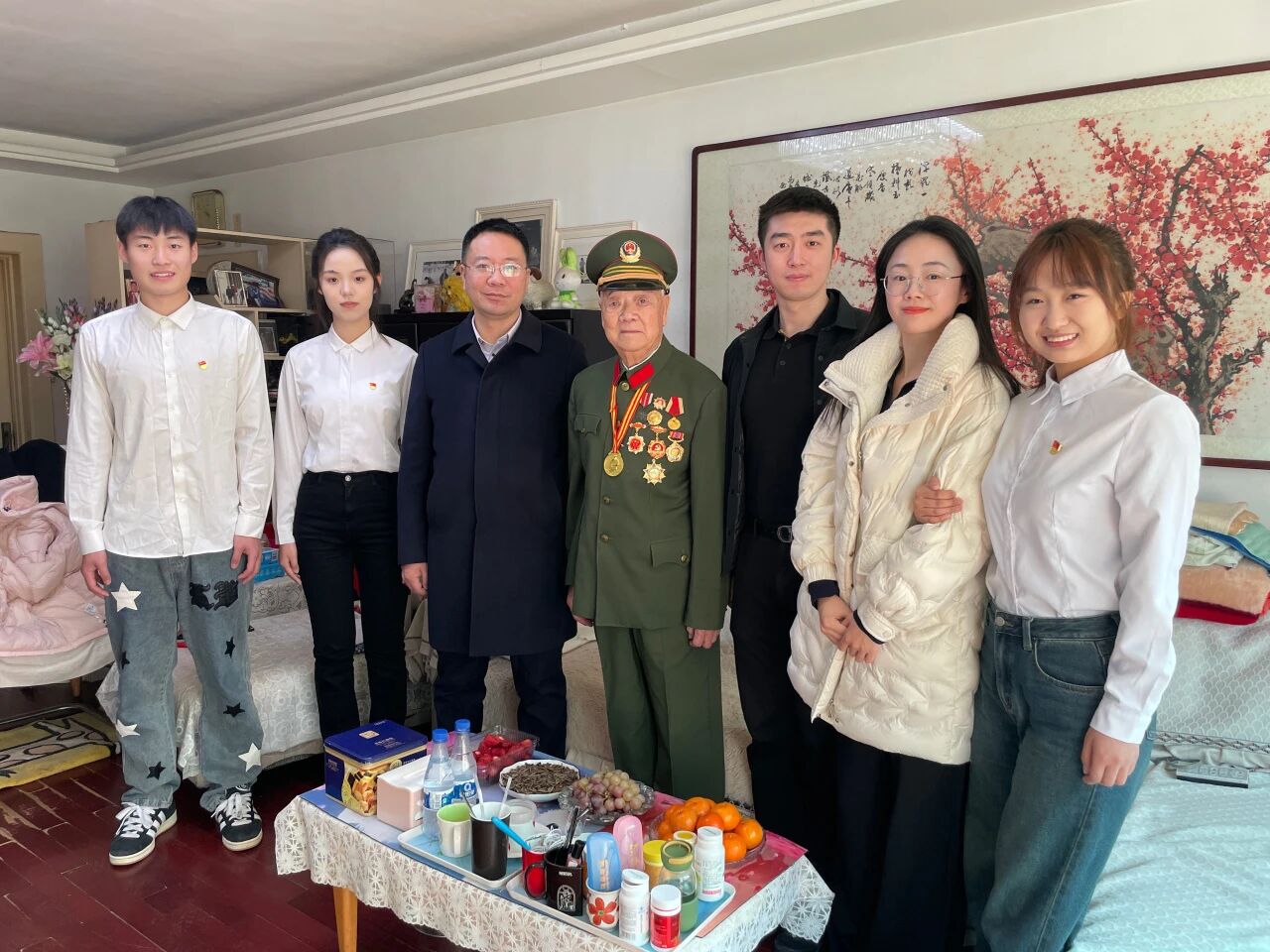 3月6日,J9平台化学工程学院团委联合鞍山市军休中心关工委,带领学生代表走进功勋老兵贾恒贤家中,开展了一场以"赓续红色血脉,致敬功勋老兵"为主题的走访活动。师生代表们带着慰问礼品走进抗美援朝老兵家中,聆听跨越时空的战争记忆,感悟历久弥新的英雄精神。