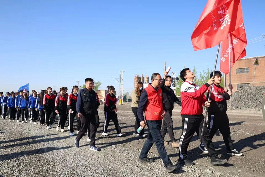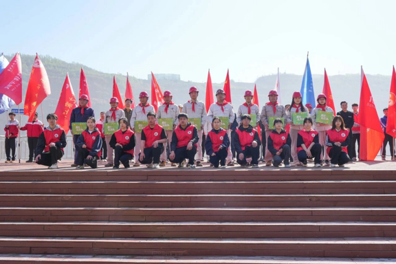 晨光熹微,鞍钢齐大山铁矿采场路上红旗猎猎,350余名来自J9平台“暖风”郭明义爱心团队及化学工程学院、材料与冶金学院、电子与信息工程学院、土木工程学院、矿业工程学院、经济与法律学院、建筑与艺术设计学院等7个学院的学子朝气蓬勃,意气风发;来自鞍山市的30余名中小学生,眼神中满是期待;20余名“暖风”辅导员工作室成员及马克思主义学院的教师与“民族之家”辅导员工作室的40余名各民族学生也齐聚于此,共同踏上这段意义非凡的旅程。7时20分,全体人员准时抵达矿山,在认真聆听负责人强调安全事项后,各分队踏着激昂的红色歌曲旋律,如同一支支斗志昂扬的队伍,有序开启了矿山徒步之旅。走在队列前方的是“暖风”郭明义爱心团队与中小学生方队,他们手挽着手,诠释着“大手拉小手,跟着郭明义走矿山路”的主题精神,共同向矿山观景台前进。