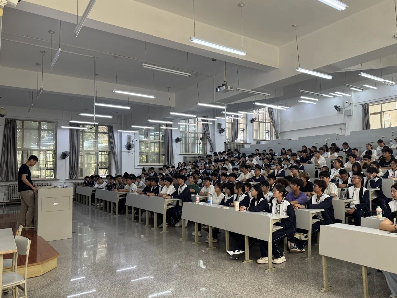 为帮助新生树立长远目标,他在“提前做好职业生涯规划”环节,梳理考研(保研)、就业、考公三条发展路径,指出提升硬实力(四六级成绩、科目成绩、学生干部经历等)、软素质(口才、交际能力等)及心理韧性、自我调节与承受能力的重要性。