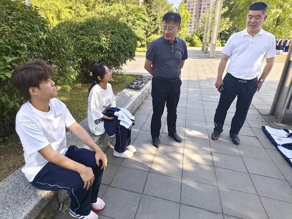 学院领导来到军训方阵前,看着同学们整齐的队列、饱满的精神状态,脸上露出欣慰的笑容。老师们跟军训总教官进行了沟通,询问了军训的各种情况。老师们鼓励新生,军训是大学生活的重要开端,要在军训中磨砺自己,培养吃苦耐劳的精神和团队协作意识,同时也要注意防暑防晒,保持良好的身体状态。