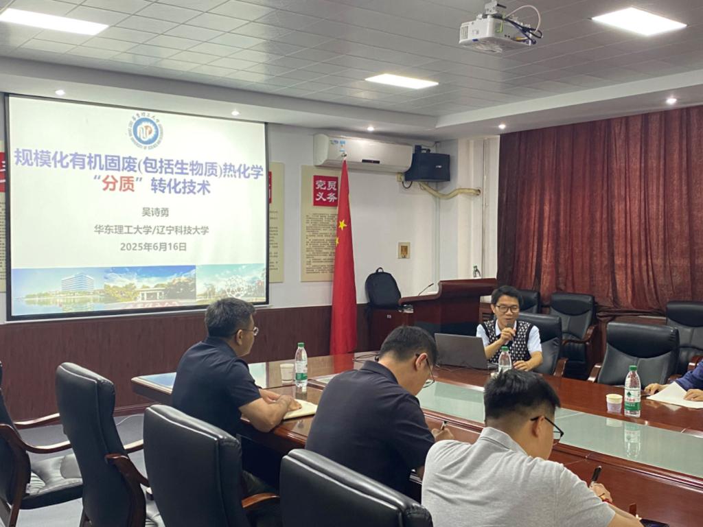报告会上,吴诗勇教授结合自身研究项目介绍了其团队在含碳分质转化装备研发、自主知识产权的高效脱氯技术的等方面的研究进展及在木屑/木粉分质转化供热项目、抗生素菌渣分质转化及无害化处置与资源利用示范项目等成果转化情况。报告会后,吴诗勇教授与师生代表在有机固废的危害及研究现状方面进行了热烈的交流,并对学院煤化工领域研究方向的发展提出了建设性意见。