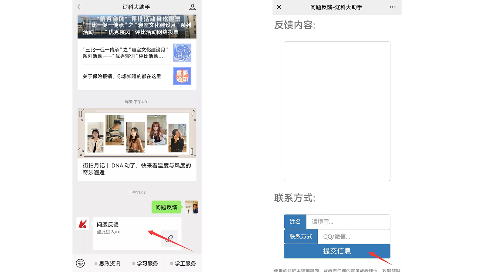 3.输入反馈内容、联系方式后,点击提交信息。