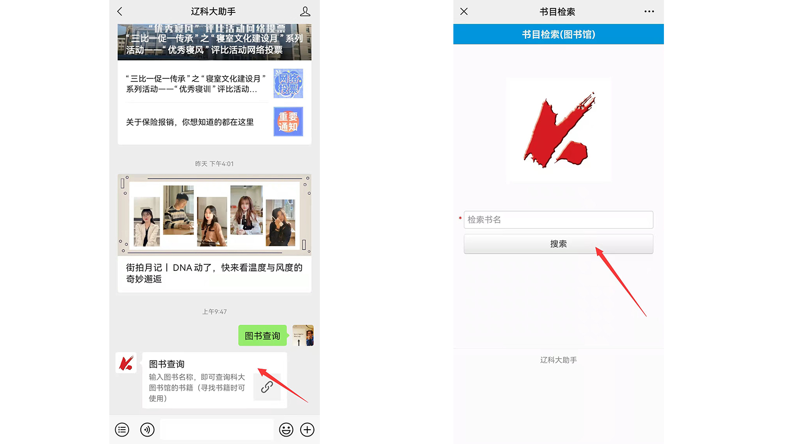 1.在对话框中输入关键字“图书查询”。