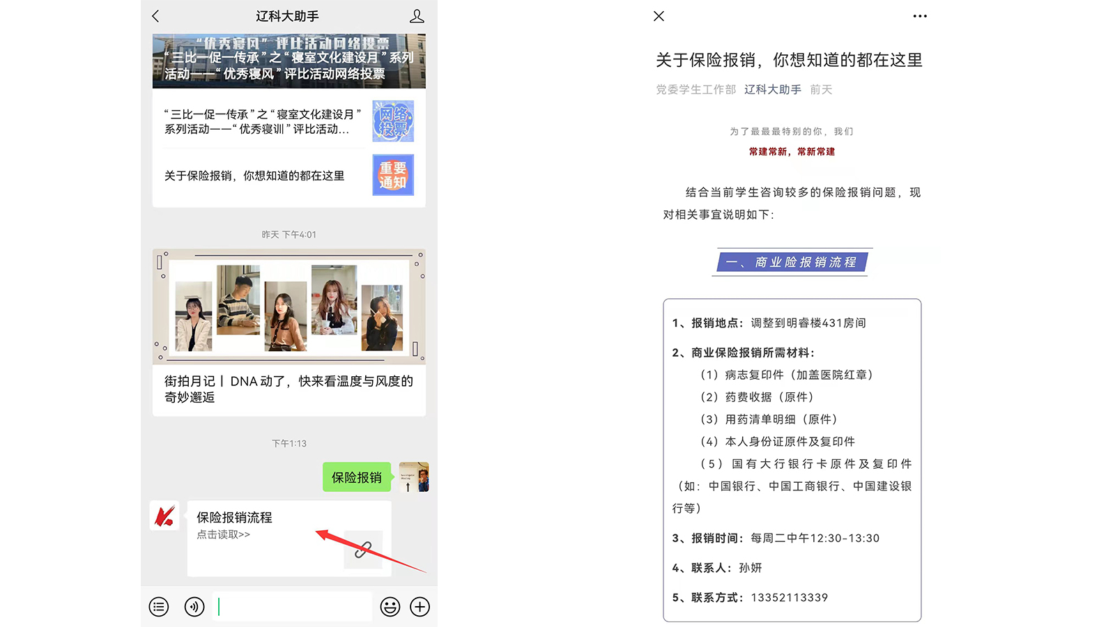 2.点击“保险报销流程”。