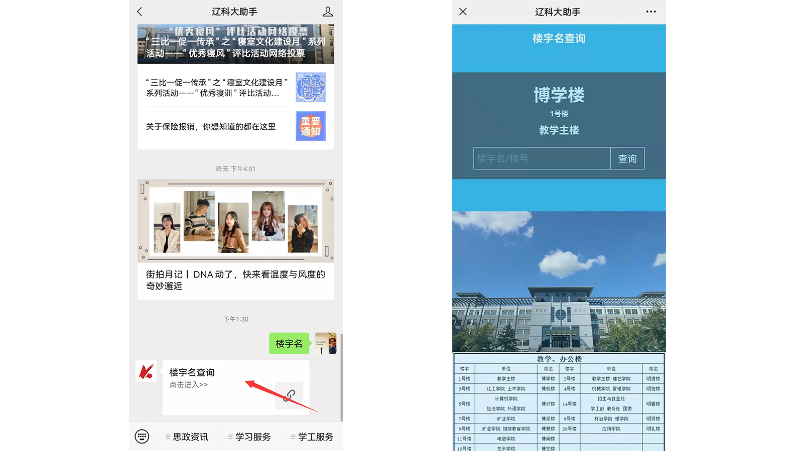 2.点击“楼宇名查询”,进入查询页面。