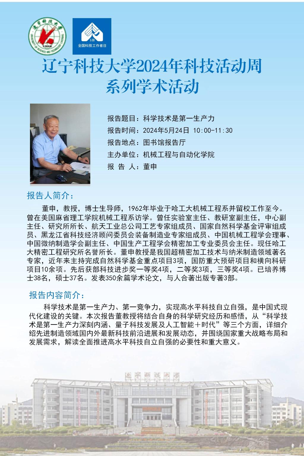 【科技活动周学术预告】科学技术是第一生产力