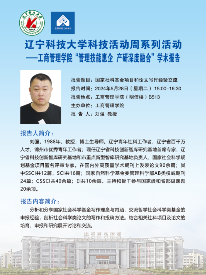 【科技活动周学术预告】国家社科基金项目和论文写作经验交流