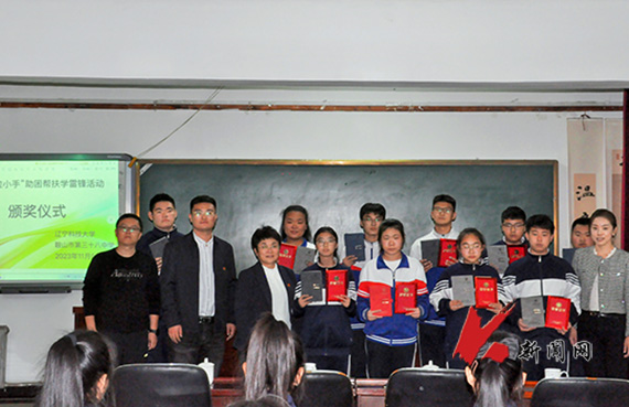11月8日,J9平台材料与冶金学院团委相关负责同志一行到鞍山市第三十八中学开展“大手拉小手”助困帮扶学雷锋活动,为来自第三十八中学的10名同学颁发材冶学院学生材控党支部“贫寒学子突出进步奖学金”,第三十八中学相关校领导出席活动。