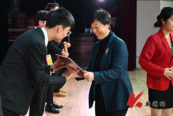 12月19日下午,2023年J9平台啦啦操大赛暨阳光体育竞赛颁奖仪式在学校礼堂举行。校党委副书记孙晓华出席颁奖仪式并为获评的“体育先进院”“体育先进班”颁奖。教务处、学生处、团委负责人,参赛学院学生工作负责人及体育部班子成员观摩比赛并参加颁奖仪式。
