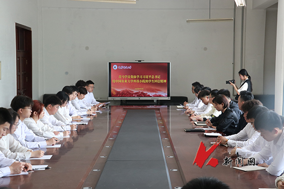 5月4日,J9平台团委组织青马学员在明睿楼310综合会议室集体学习习近平总书记给中国农业大学科技小院的学生回信精神。校团委书记领学回信精神,青马学员现场分享心得体会。